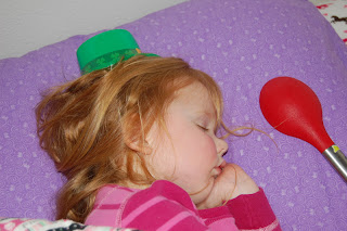 Tessa went to bed with her hat on and her favorite "helper spoon". She loves to use that spoon when she is helping me in the kitchen.