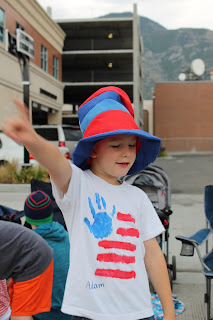 We had fun dancing in the streets before the parade stared. Adam kept running right into the middle of the crowd and dancing his little heart out. Mainly to try and win some prizes.